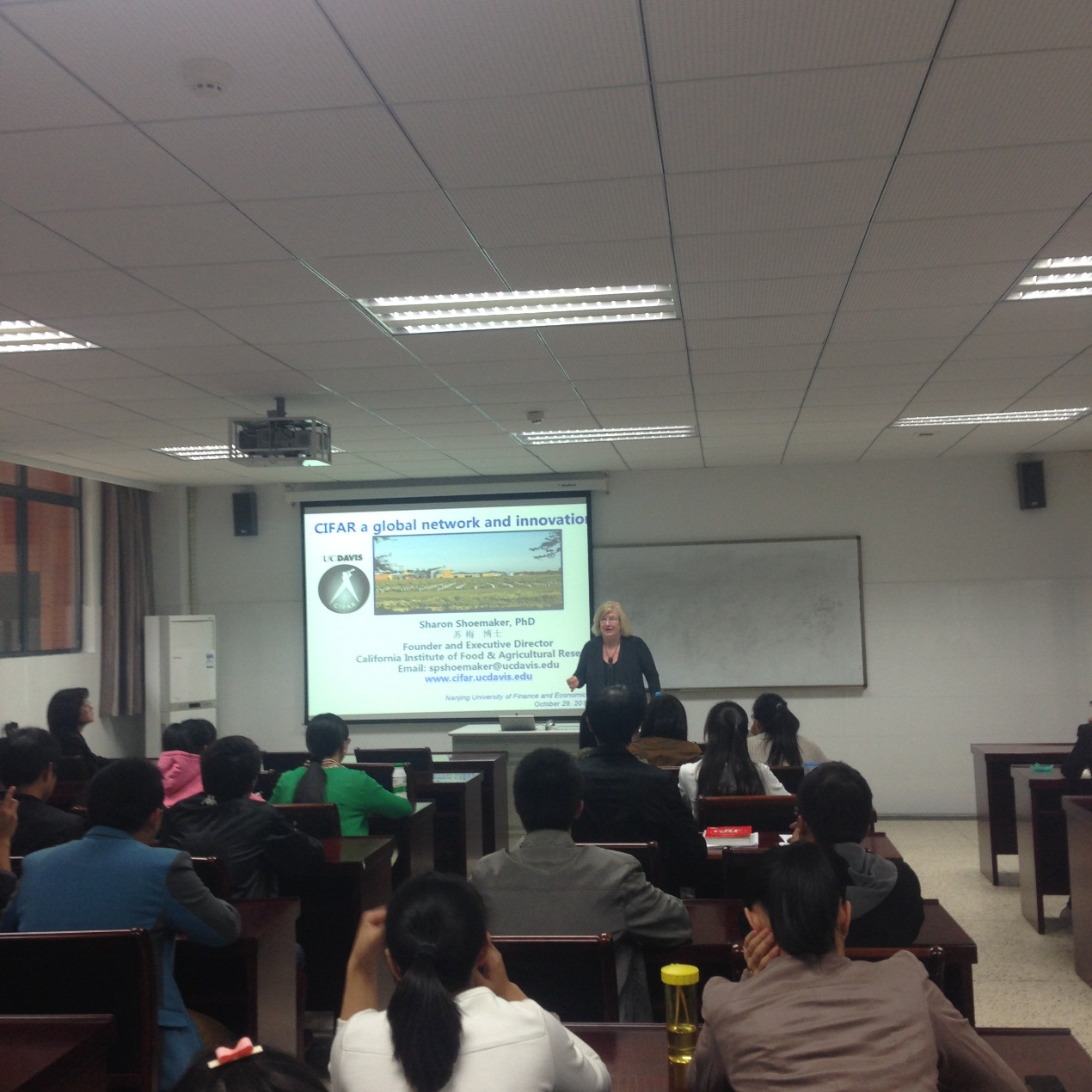 2013年10月28日下午,應我院邀請,加州大學戴維斯分校食品和農(nóng)業(yè)研究所所長Sharon Shoemaker博士來到我院做了題為《CIFAR─A global network and innovation》的學術報告,我校國際學院院長邱偉芬、我院副院長王立峰和部分教師、全體在校研究生參加了講座。講座由國際交流處處長邱偉芬主持。