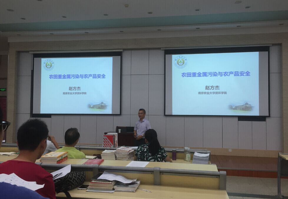 9月28號(hào)下午,南京農(nóng)業(yè)大學(xué)資源與環(huán)境學(xué)院趙方杰教授蒞臨我院,在我校仙林校區(qū)食工二樓報(bào)告廳作了 “農(nóng)田重金屬污染與農(nóng)產(chǎn)品安全”的專(zhuān)題學(xué)術(shù)講座。食工學(xué)院部分師生80多人聽(tīng)取了學(xué)術(shù)報(bào)告,雙方就農(nóng)田重金屬污染、農(nóng)產(chǎn)品重金屬超標(biāo)等問(wèn)題展開(kāi)了交流與討論。
