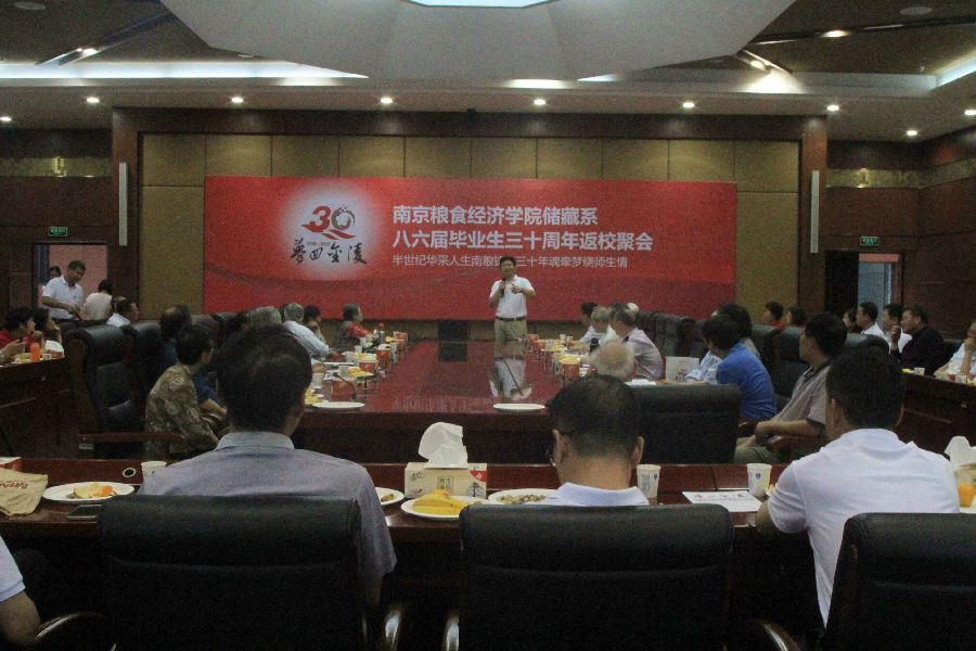 闊別三十載,今朝又重逢!9月24日上午,儲(chǔ)藏系86屆40余名校友相聚母校,在學(xué)院會(huì)議室舉行畢業(yè)三十周年聚會(huì)。院黨委書記吳正浩、院長胡秋輝和當(dāng)年任課教師參加聚會(huì)。聚會(huì)由86屆校友李建清主持。