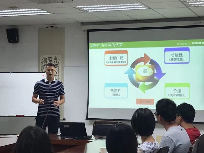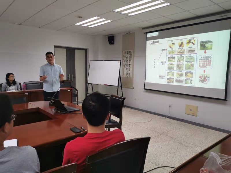 孟令晗博士多層次地與師生們探究了淀粉基全降解材料的性能與環(huán)保功能,并基于水分與糊化強(qiáng)度的關(guān)系方面研究了淀粉基全降解材料的性能優(yōu)勢,通過淀粉基做成快遞的內(nèi)填物,減少了快遞行業(yè)中的資源浪費(fèi),達(dá)到環(huán)保的目的,獲得大學(xué)生自主創(chuàng)新項(xiàng)目金獎。陳二虎講師從蛋白組學(xué)角度出發(fā),與師生們共同探究了“桔小實(shí)蠅蛹從白色變?yōu)楹稚臋C(jī)理代謝途徑”,從“代謝通路、dsRNA沉默技術(shù)和桔小實(shí)蠅蛹?xì)は嚓P(guān)基因的關(guān)系方面的分析,達(dá)到對桔小實(shí)蠅蟲害防治的目的”。沙龍研討環(huán)節(jié),教師們就本期兩位講師的報(bào)告內(nèi)容的問題踴躍發(fā)言、廣泛交流,并圍繞兩位博士2020年擬申報(bào)的青年基金內(nèi)容進(jìn)行深入剖析,提出了建設(shè)性的基金申報(bào)意見。