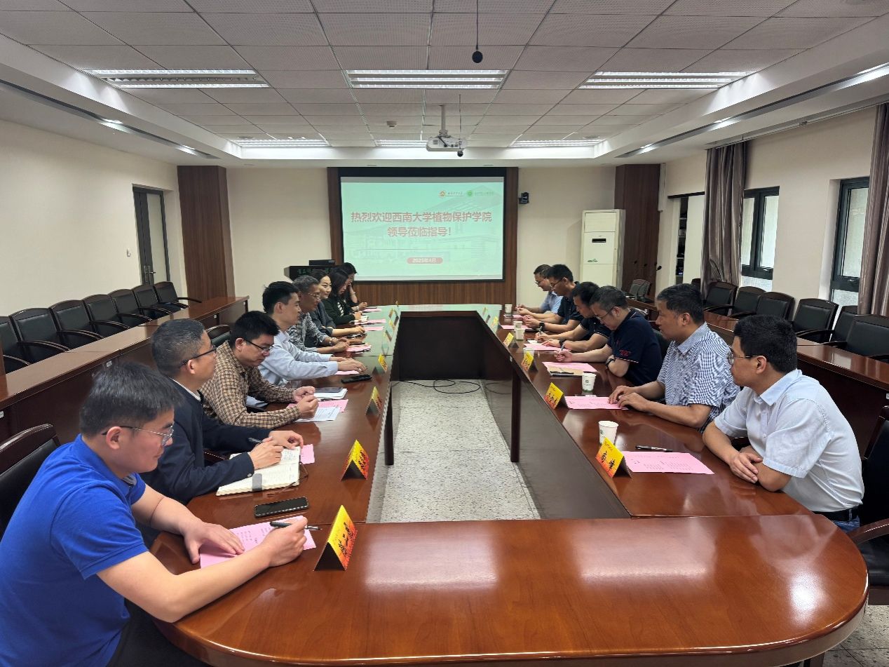 4月28日上午,西南大學(xué)植物保護(hù)學(xué)院黨委書記劉立廣、院長蔣紅波、副院長楊宇衡、牛金志,研究員王善之、副教授尚峰一行來我院調(diào)研交流。院長唐培安、黨委副書記胡心淼、副院長沈飛、院長助理李向菲及部分教師代表參加座談會。座談會由黨委書記許文彪主持。