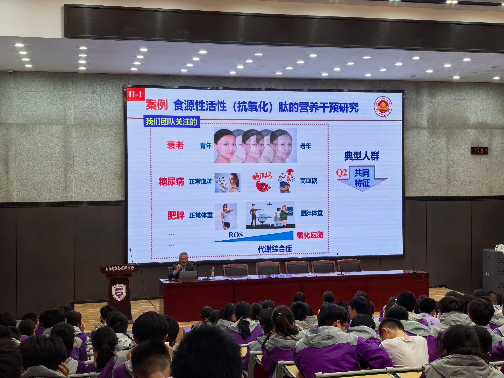 “飲食不是簡單的飽腹,而是關(guān)乎一生的健康投資,尤其對于即將奔赴高考戰(zhàn)場的學(xué)子們來說,科學(xué)的膳食結(jié)構(gòu)是保持良好學(xué)習(xí)狀態(tài)和身體素質(zhì)的關(guān)鍵。”沈新春教授在講座中從當(dāng)下青少年常見的飲食誤區(qū)切入,結(jié)合國內(nèi)外營養(yǎng)學(xué)研究數(shù)據(jù),深入剖析膳食結(jié)構(gòu)與慢性疾病、免疫力及學(xué)習(xí)效能的關(guān)聯(lián)。他通過“膳食寶塔”模型,直觀展示優(yōu)質(zhì)蛋白、全谷物與新鮮蔬果的攝入比例,并針對高中生學(xué)業(yè)壓力大、作息不規(guī)律等特點(diǎn),提出“三餐定時(shí)、零食優(yōu)選、飲水充足”的實(shí)用建議,為高考學(xué)子的飲食健康提供了科學(xué)指導(dǎo)。