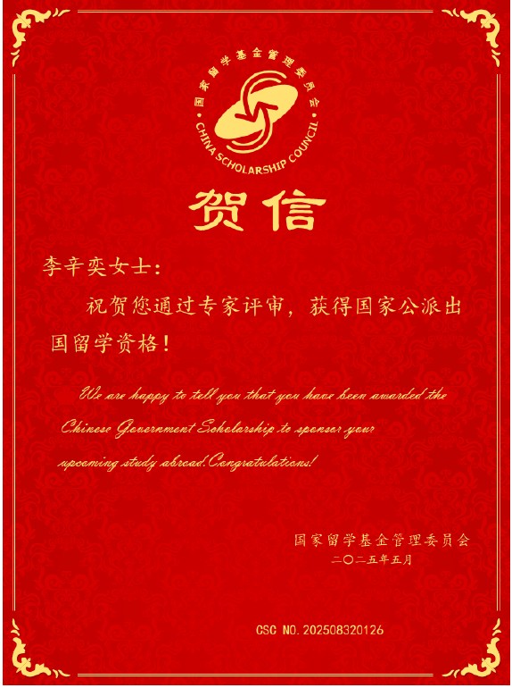 近日,國家留學(xué)基金管理委員會(huì)公布了2025年國家建設(shè)高水平大學(xué)公派研究生項(xiàng)目錄取名單,我院2022級(jí)食品科學(xué)與工程學(xué)碩士研究生李辛奕同學(xué)憑借扎實(shí)的專業(yè)基礎(chǔ)、突出的科研能力以及出色的學(xué)術(shù)成果,成功入選該項(xiàng)目!李辛奕同學(xué)即將前往全球食品科學(xué)與工程專業(yè)排名第五(2024年軟科世界一流學(xué)科排名)的美國馬薩諸塞大學(xué)阿姆赫斯特分校攻讀博士學(xué)位。