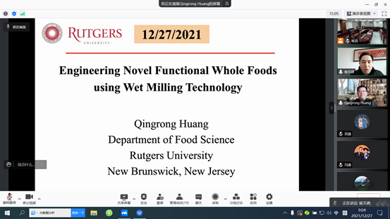2021年12月27日,應(yīng)我院邀請(qǐng),美國(guó)羅格斯大學(xué)黃慶榮教授為師生作了題為Engineering whole grain emulsion gels using wet milling technology的線上學(xué)術(shù)報(bào)告,學(xué)院部分師生代表參加了本次報(bào)告會(huì),報(bào)告會(huì)由科研處副處長(zhǎng)楊文建教授主持。