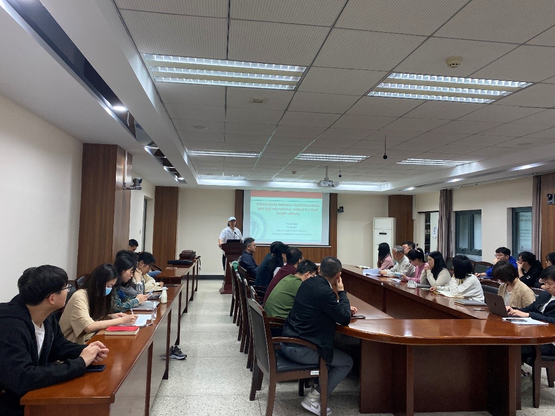 5月10日下午,應(yīng)食品科學(xué)與工程學(xué)院邀請,美國馬薩諸塞大學(xué)阿默斯特食品科學(xué)系教授肖航在食工樓211會議室作了題為“Interplay between food and gut microbiome: critical roles in human health”的學(xué)術(shù)報告,學(xué)院部分教師及研究生參加講座。講座由學(xué)院院長方勇教授主持。