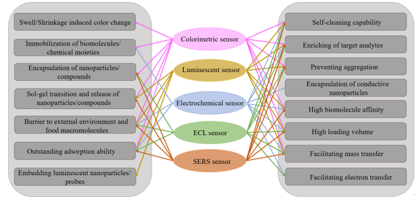 總而言之,盡管水凝膠基材料在食品安全快速傳感方面顯示出巨大的潛力,但在它們能夠廣泛用于商業(yè)化的食品安全控制系統(tǒng)之前,仍需繼續(xù)努力。通過多學(xué)科合作,如高分子工程、材料科學(xué)和生物化學(xué),水凝膠基傳感器有望在未來進一步促進食品安全監(jiān)測的效率。