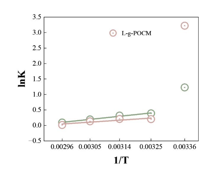 表2 L-PCM and L-TCF吸附Pb(II)的等溫吸附模型參數(shù)