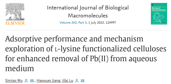 2023年5月25日,南京財經(jīng)大學食品科學與工程學院吳思邈、陸繼來(通訊作者)在國際TOP期刊International journal of biological macromolecules(Q1,IF: 8.025)發(fā)表題為“Adsorptive performance and mechanism exploration of l-lysine functionalized celluloses for enhanced removal of Pb(II) from aqueous medium”的研究性論文。