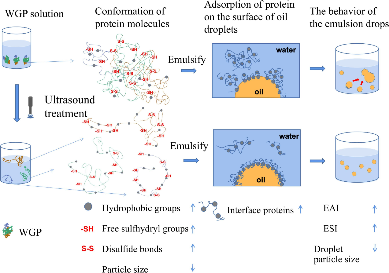 圖5 超聲處理改善麥胚蛋白乳化特性的機(jī)制示意圖