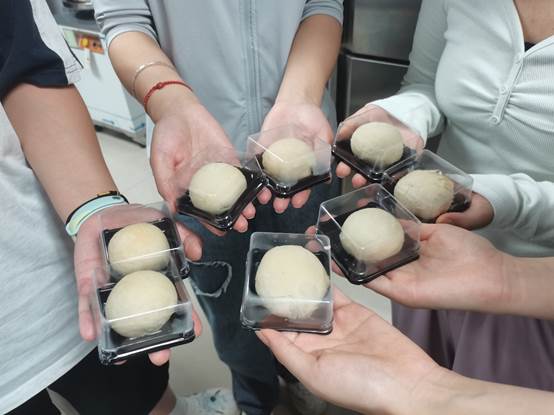 隨著烤箱“叮”的一聲響起,月餅出爐了!同學們迫不及待地圍上前去,欣賞著自己親手制作的月餅。出爐的月餅稍涼后,大家便迫不及待地品嘗起來。那香甜的口感、熟悉的味道,仿佛讓同學們回到了家的懷抱之中。大家圍坐在一起,分享著月餅,也分享著彼此的快樂與感動。這一刻,校園變成了家,同學們也成為了彼此最親密的家人。