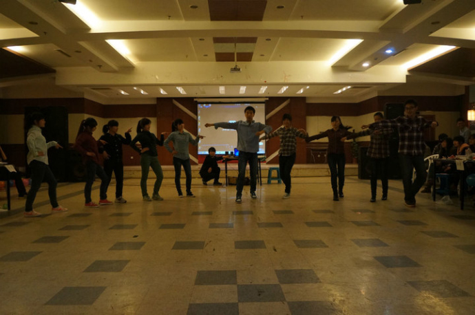 一個(gè)簡簡單單的小游戲之后,晚會(huì)繼續(xù)進(jìn)行。接著出場的是社團(tuán)部,不知道是他們故意安排的還是怎么的,前幾組的對唱讓所有人都忍俊不禁,最后一組的《征服》卻意外地征服了所有的觀眾,掌聲不絕于耳……