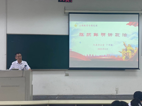 丁書俊老師首先向大家介紹政治建設(shè)的重要性,習(xí)近平總書記強(qiáng)調(diào),黨的政治建設(shè)是黨的根本性建設(shè),決定黨的建設(shè)方向和效果。二十大報(bào)告指出,我們深入推進(jìn)全面從嚴(yán)治黨,堅(jiān)持打鐵必須自身硬,提出和落實(shí)新時(shí)代黨的建設(shè)總要求,以黨的政治建設(shè)統(tǒng)領(lǐng)黨的建設(shè)各項(xiàng)工作。隨后,丁書俊老師從“對‘政治’的理解”、“對‘旗幟鮮明講政治’的認(rèn)識”以及“如何旗幟鮮明講政治”三個(gè)方面進(jìn)行專題黨課講授。講授過程中,丁書俊老師通過生活實(shí)例與通俗易懂的語言,讓研究生黨員對“旗幟鮮明講政治”這一主題有了深刻的認(rèn)識。在黨課的最后,丁書俊老師對研究生黨員給予了希望與要求,希望研究生黨員能夠聚焦聚力學(xué)習(xí)主業(yè),行動上爭先鋒,要自覺在嚴(yán)謹(jǐn)、廉潔求學(xué)治學(xué)上做表率、做示范、走在前,為校風(fēng)、學(xué)風(fēng)建設(shè)貢獻(xiàn)力量,力所能及的參與或組織集體活動和社會實(shí)踐,在提升自身綜合素質(zhì)的同時(shí),更好地服務(wù)他人,為將來走上工作崗位更好地回報(bào)社會、報(bào)效祖國做準(zhǔn)備。