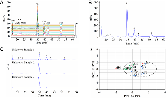 金針菇多糖是金針菇中具有多種生物活性的主要功能成分。經(jīng)過(guò)復(fù)雜的生產(chǎn)過(guò)程及各種因素影響,產(chǎn)品質(zhì)量參差不齊,真?zhèn)瘟驾y以鑒別。隨著多糖類產(chǎn)品的多元化發(fā)展,如何鑒別多糖產(chǎn)品質(zhì)量,已成為人們迫切關(guān)注的問(wèn)題。而目前關(guān)于金針菇多糖類產(chǎn)品質(zhì)量標(biāo)準(zhǔn)的研究還相對(duì)稀少,沒(méi)有確立統(tǒng)一的標(biāo)準(zhǔn)和科學(xué)有效的鑒別方法。
