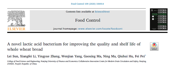 近日,我院裴斐副教授課題組利用新型植物乳桿菌LB-1與酵母菌協(xié)同發(fā)酵技術(shù)開發(fā)新型全麥面包產(chǎn)品,顯著改善了全麥面包質(zhì)構(gòu)、風(fēng)味及貯藏特性。相關(guān)結(jié)果以“A novel lactic acid bacterium for improving the quality and shelf life of whole wheat bread.”為題發(fā)表在Food Control雜志上。我院碩士研究生孫磊為第一作者,裴斐副教授為通訊作者。本研究得到江蘇省農(nóng)業(yè)科技自主創(chuàng)新資金和江蘇省青藍(lán)工程的資助。