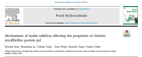 2022年5月30日,楊玉玲教授在Food Hydrocolloids發(fā)表了題為Mechanisms of inulin addition affecting the properties of chicken myofibrillar protein gel的研究論文,該論文以南京財經(jīng)大學為第一單位,楊玉玲教授為通訊作者。