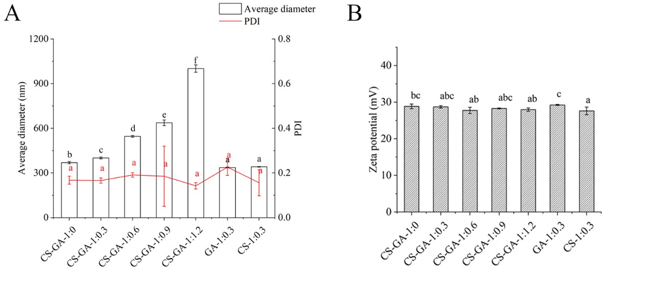 2024年1月,南京財(cái)經(jīng)大學(xué)食品科學(xué)與工程學(xué)院湯曉智、高成成(通訊作者)在國(guó)際TOP期刊Food Hydrocolloids(Q1,IF: 10.7)發(fā)表題為“Structure and functionality of cinnamaldehyde/chitosan/gum Arabic based composite nanoparticles”的研究性論文。